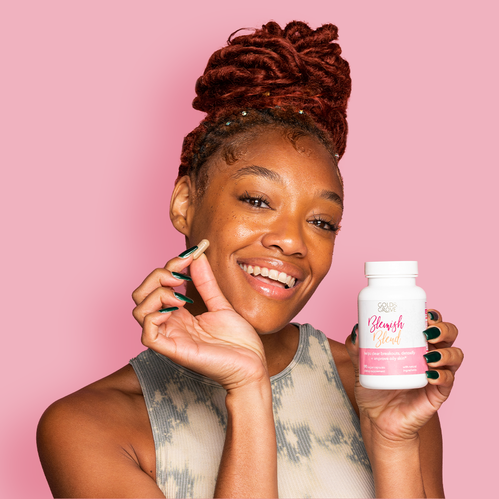 Breakouts start deep below the skin's surface, which is exactly why they need an internal solution to stop them from forming in the first place. Blemish Blend delivers the vitamins and nutrients our skin needs to fight off troublesome acne, once and for all.