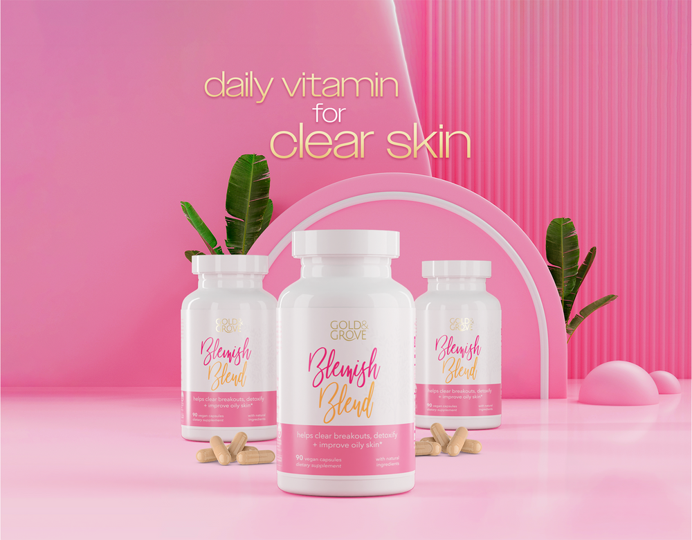 Blemish Blend is carefully formulated with natural and organic ingredients to help clear acne and promote healthy, glowing skin. We are happy to offer a vitamin that is safe, gentle and effective while being free from harmful chemicals, preservatives, and additives